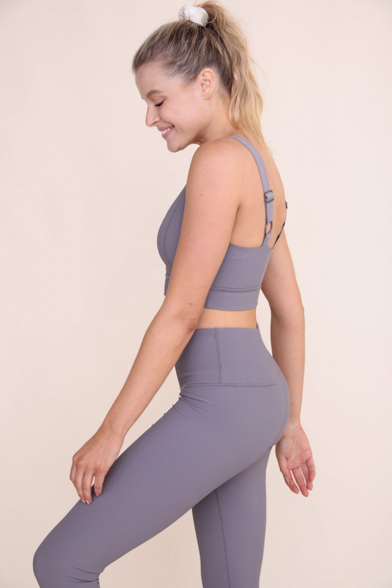 MONO B BRONZE Micro Ribbed Lycra-Blend Sports Bra