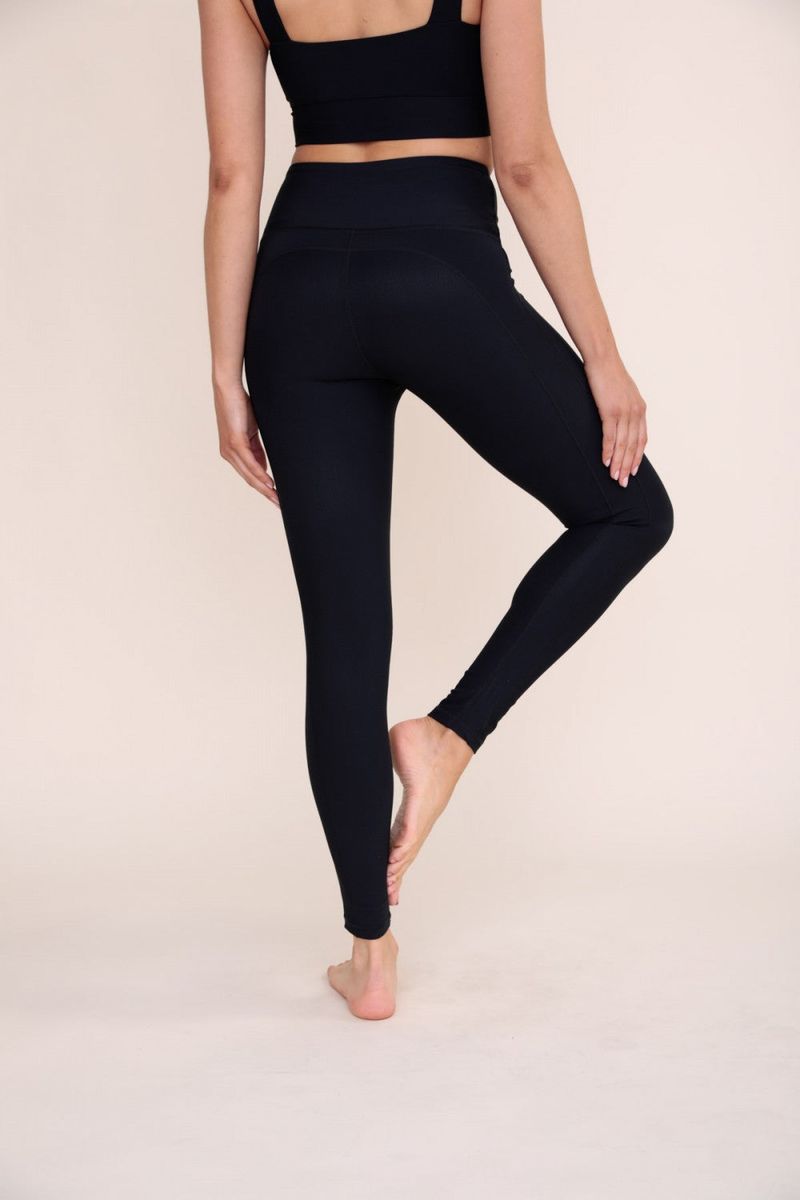 This performance-level pair of leggings comes with a high waistband (for abs support). The swooping panel on the back as well as the all-over micro ribbing (strategically placed at different angles) achieve a sleek and streamlined look.