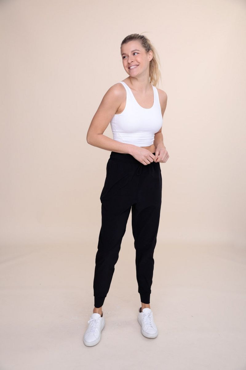 This sports bra features an elongated body for more coverage on the mid-section, as well as slanted side seamlines for a streamlined silhouette.