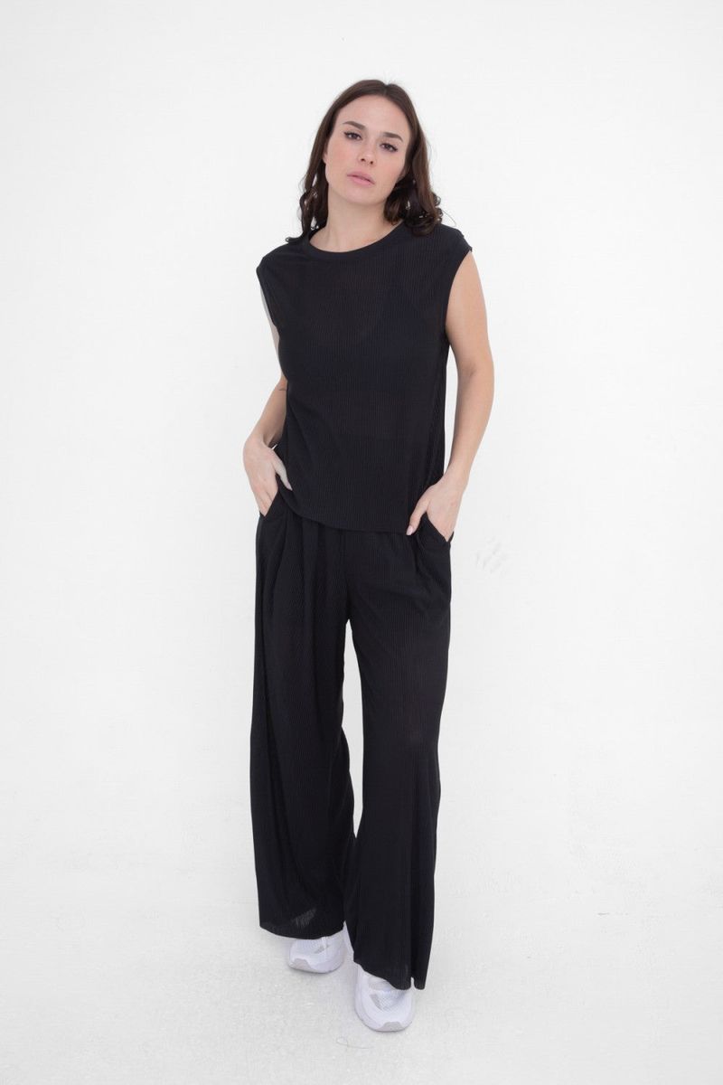 These luxuriously lightweight pants are made in a micro pleated jersey. The flattering wide leg silhouette comes complete with a partial lining for ultimate comfort and easy breezy coverage.