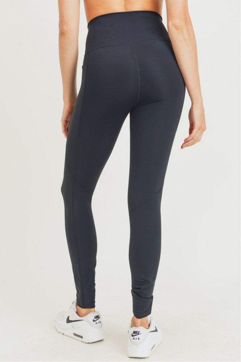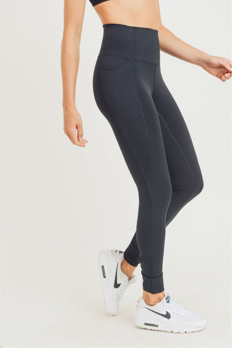 These solid-colored leggings feature a tapered, high waistband for abs support and waist compression. We took out the elastic band on top for a more comfortable fit. No pockets mean less bulk.