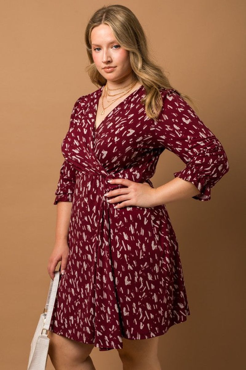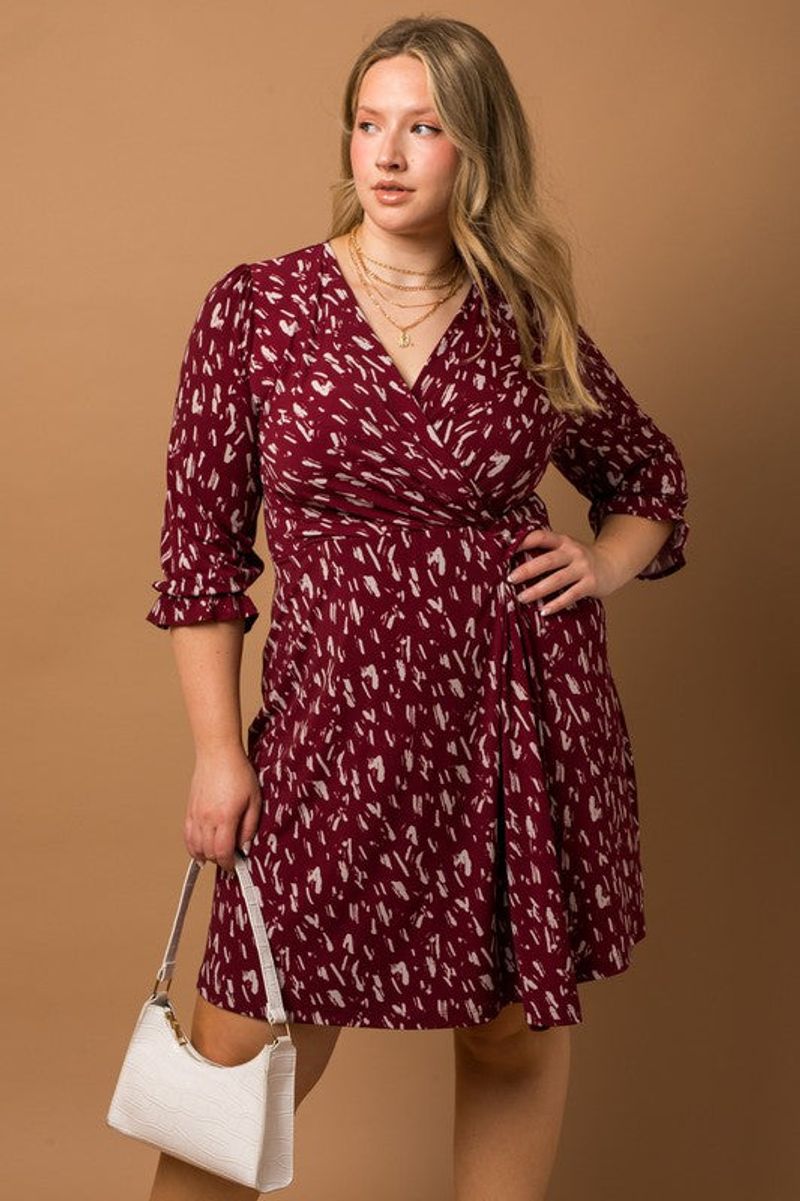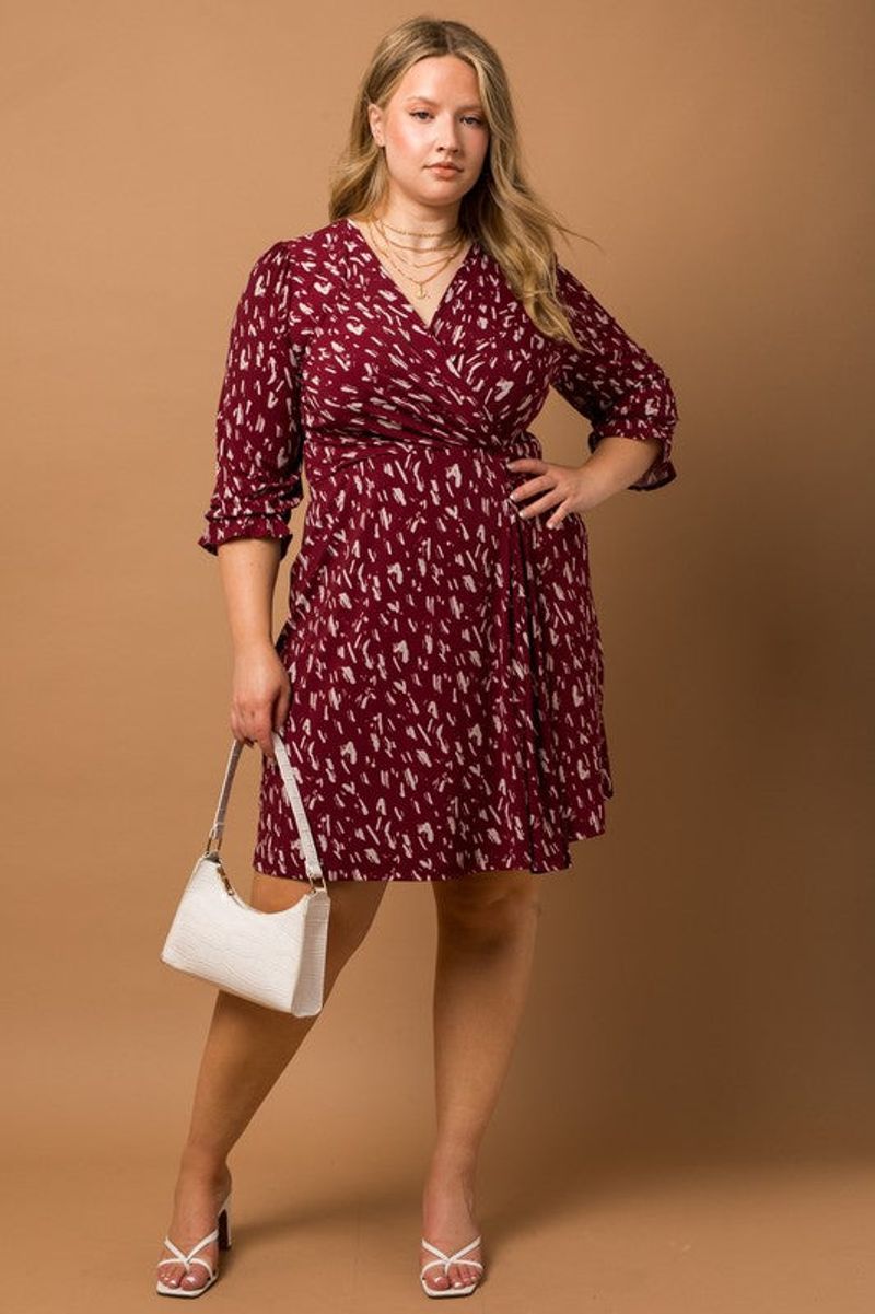 PLUS Faux Wrap Printed Mini Dress
