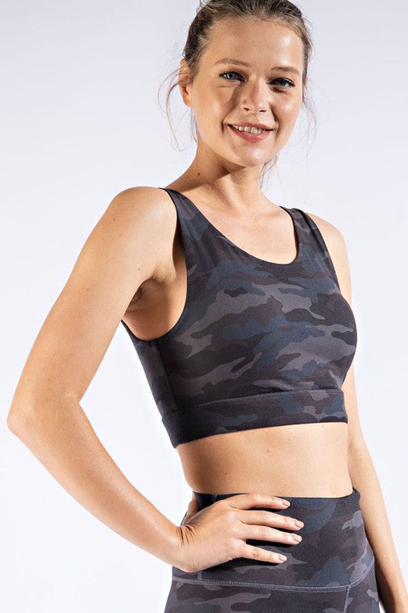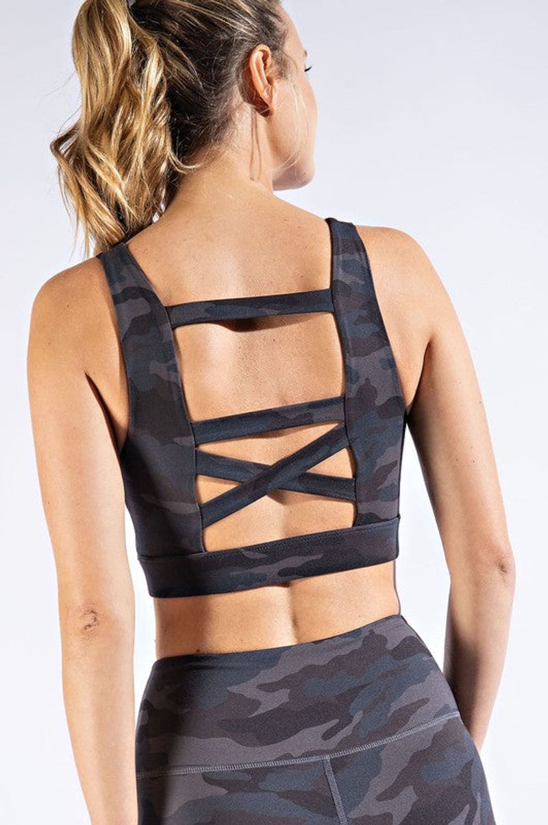 RAE MODE Camo Print Cross Back Sports Bra (Grey)