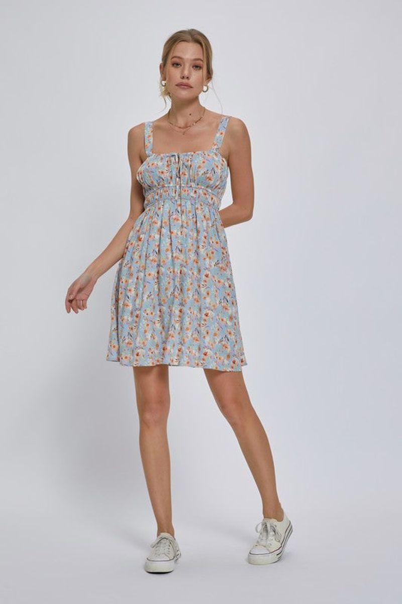 Double Waist Floral Mini Dress