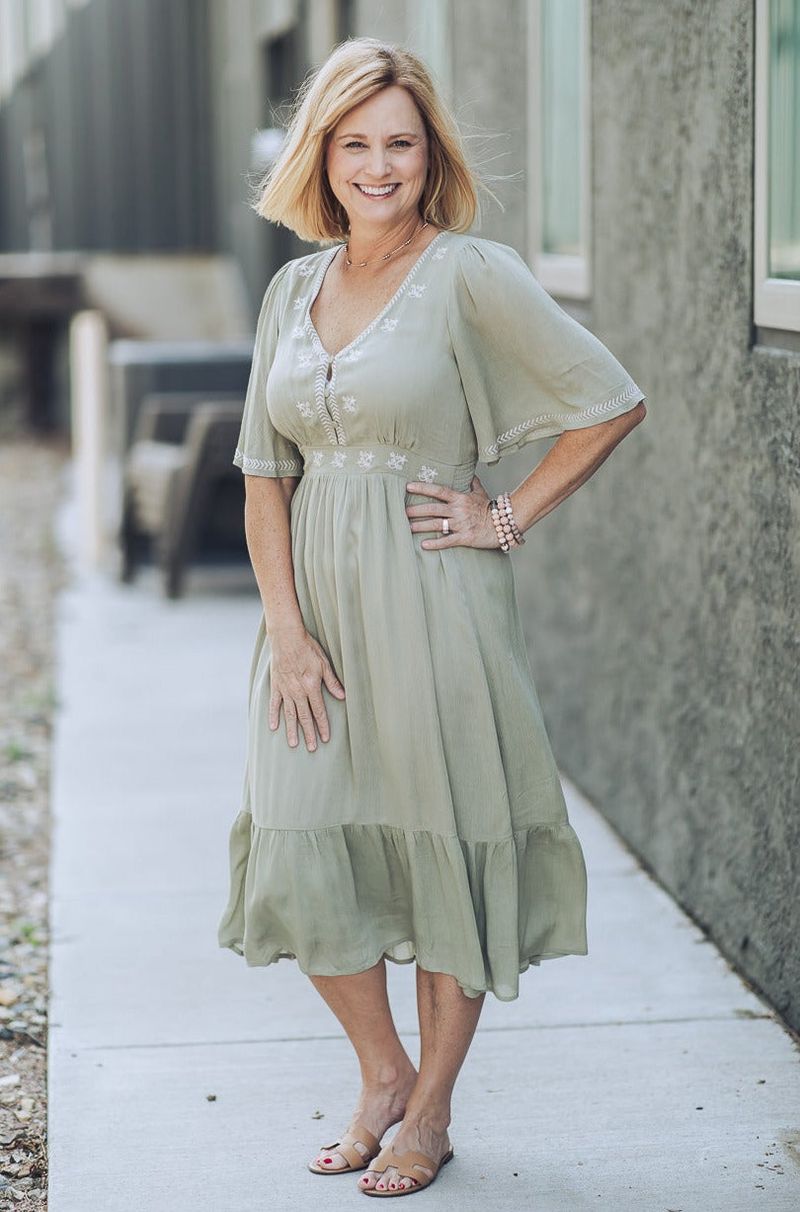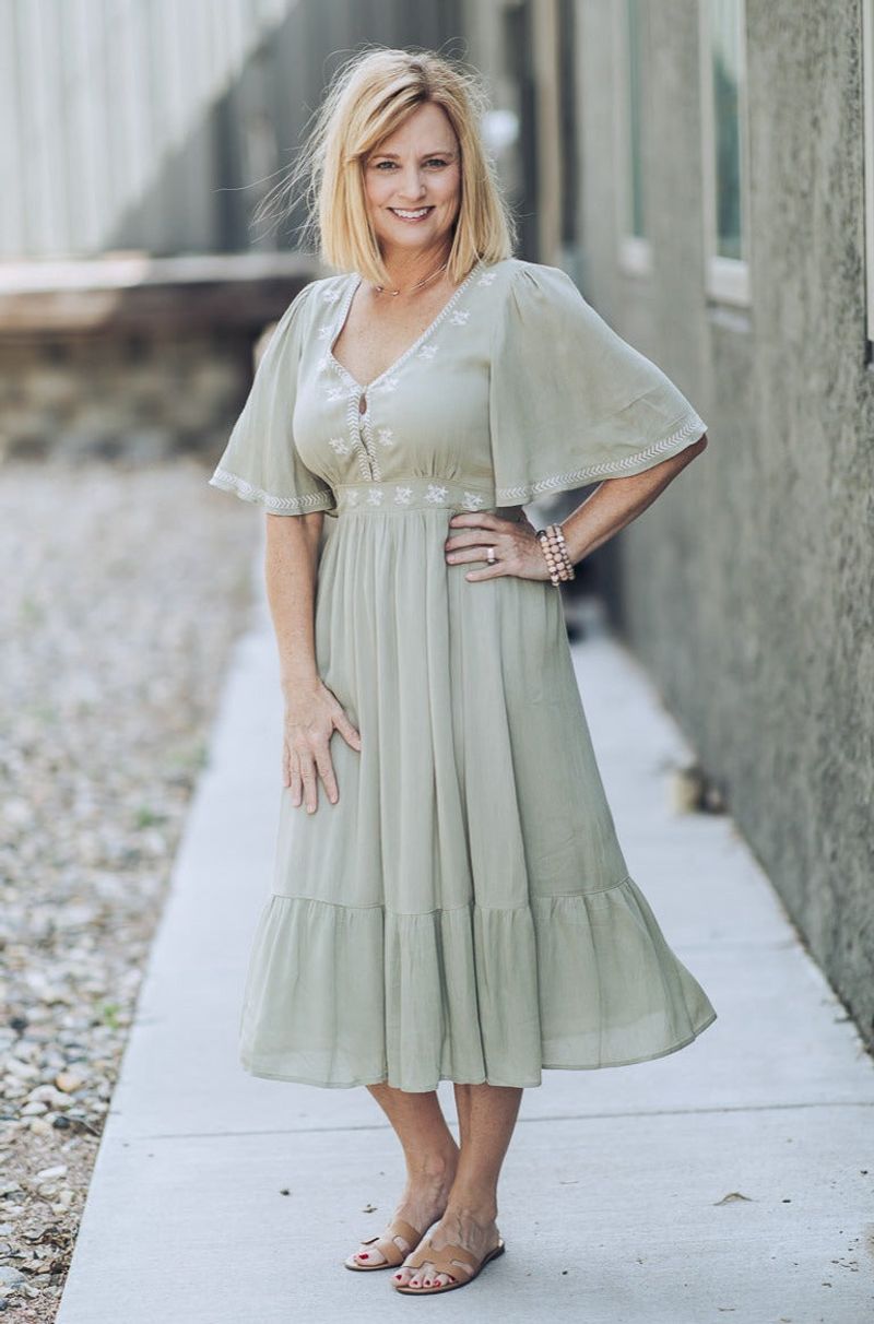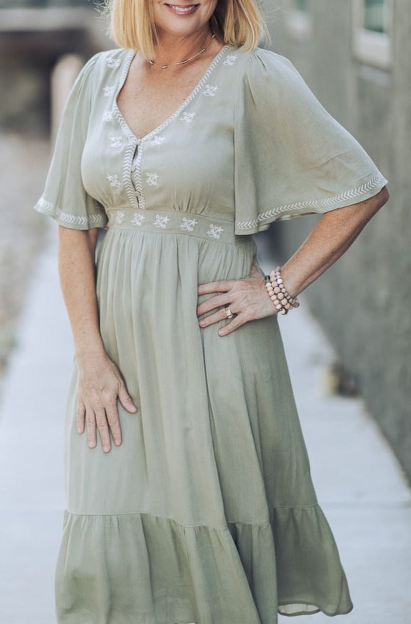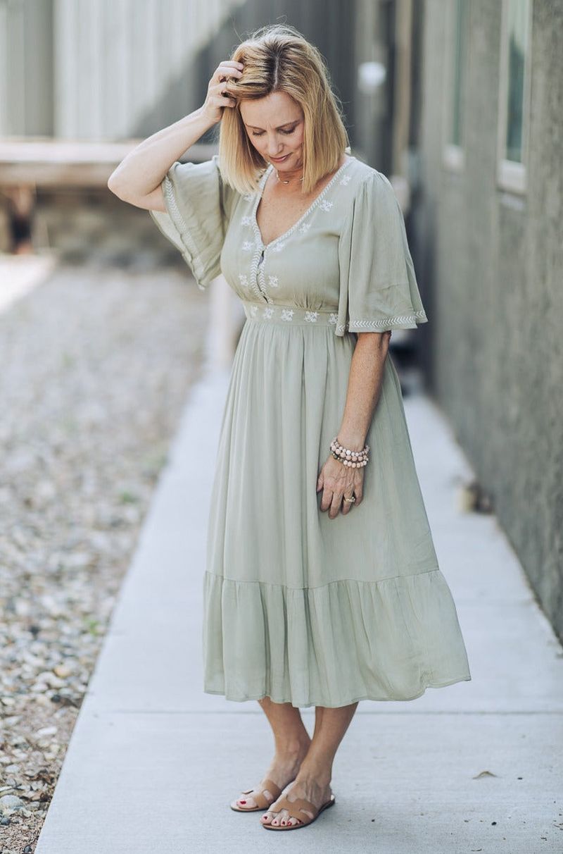 The Embroidered Smocked Midi Dress boasts beautiful embroidery detail and a smocked waist for an elegant, timeless look. This midi-length dress combines classic craftsmanship with modern styling for a stunning outfit.