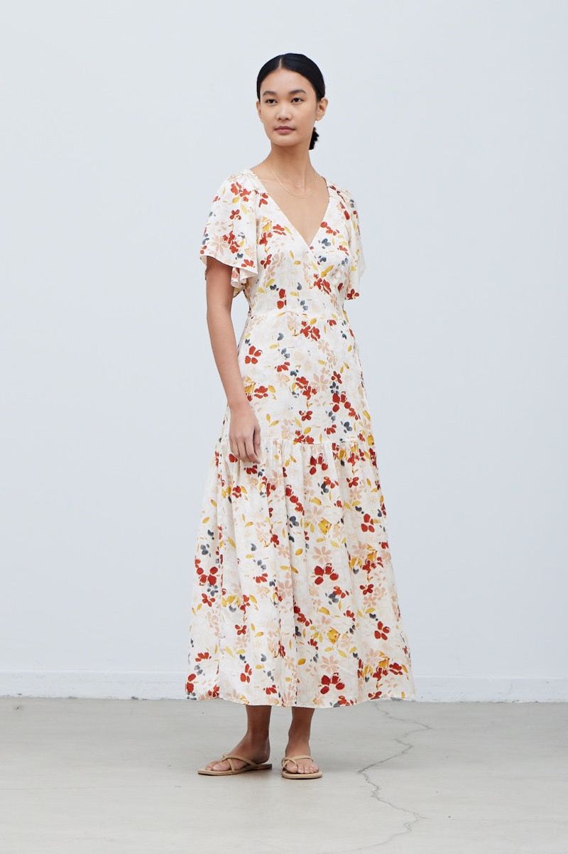 This Grade & Gather wrap dress is crafted from 100% polyester for enhanced comfort and durability. Its uniquely printed floral pattern adds an eye-catching element to any outfit, making it a stylish choice for any occasion. Its tailored fit and flattering silhouette highlight the feminine figure, completing the look.
